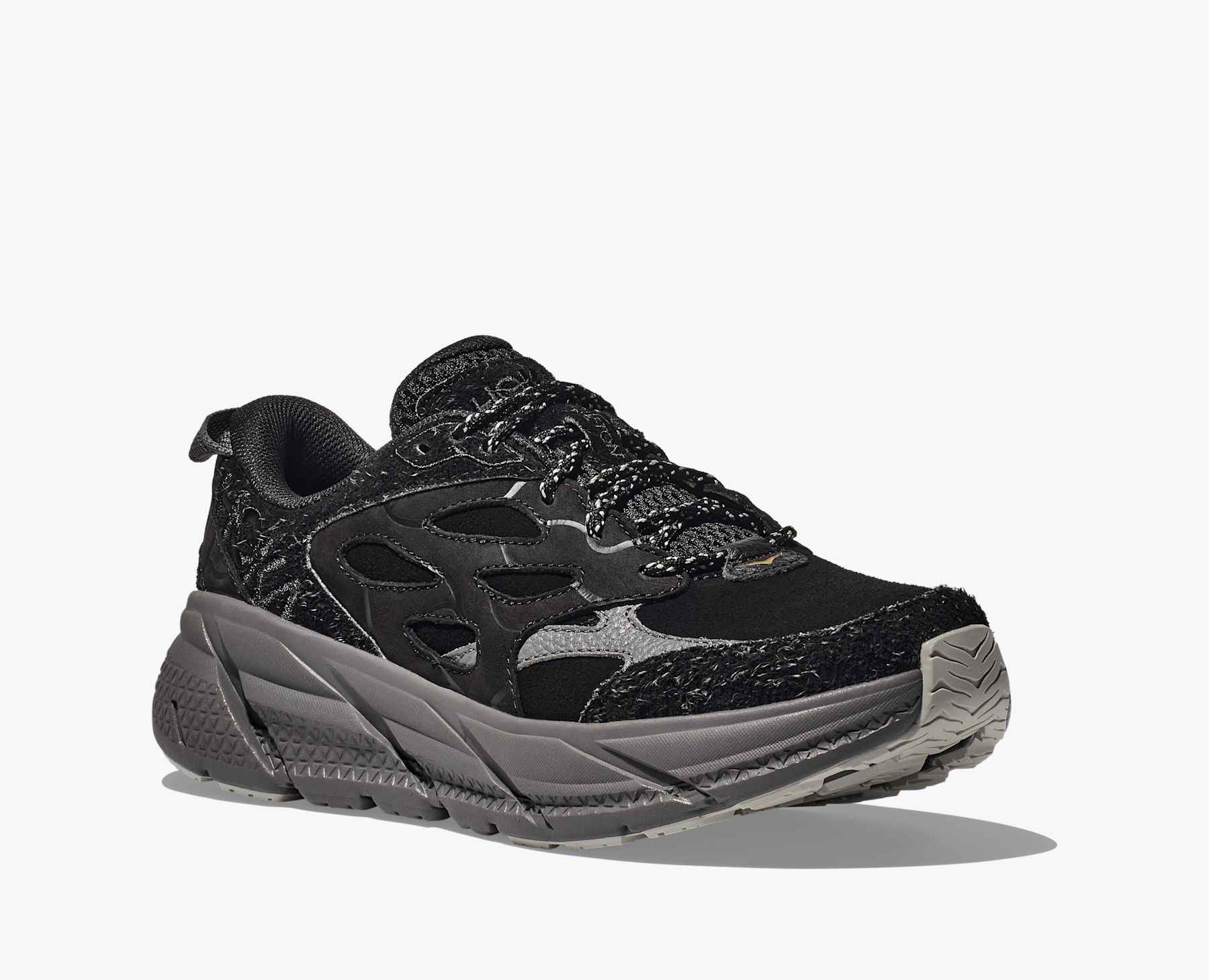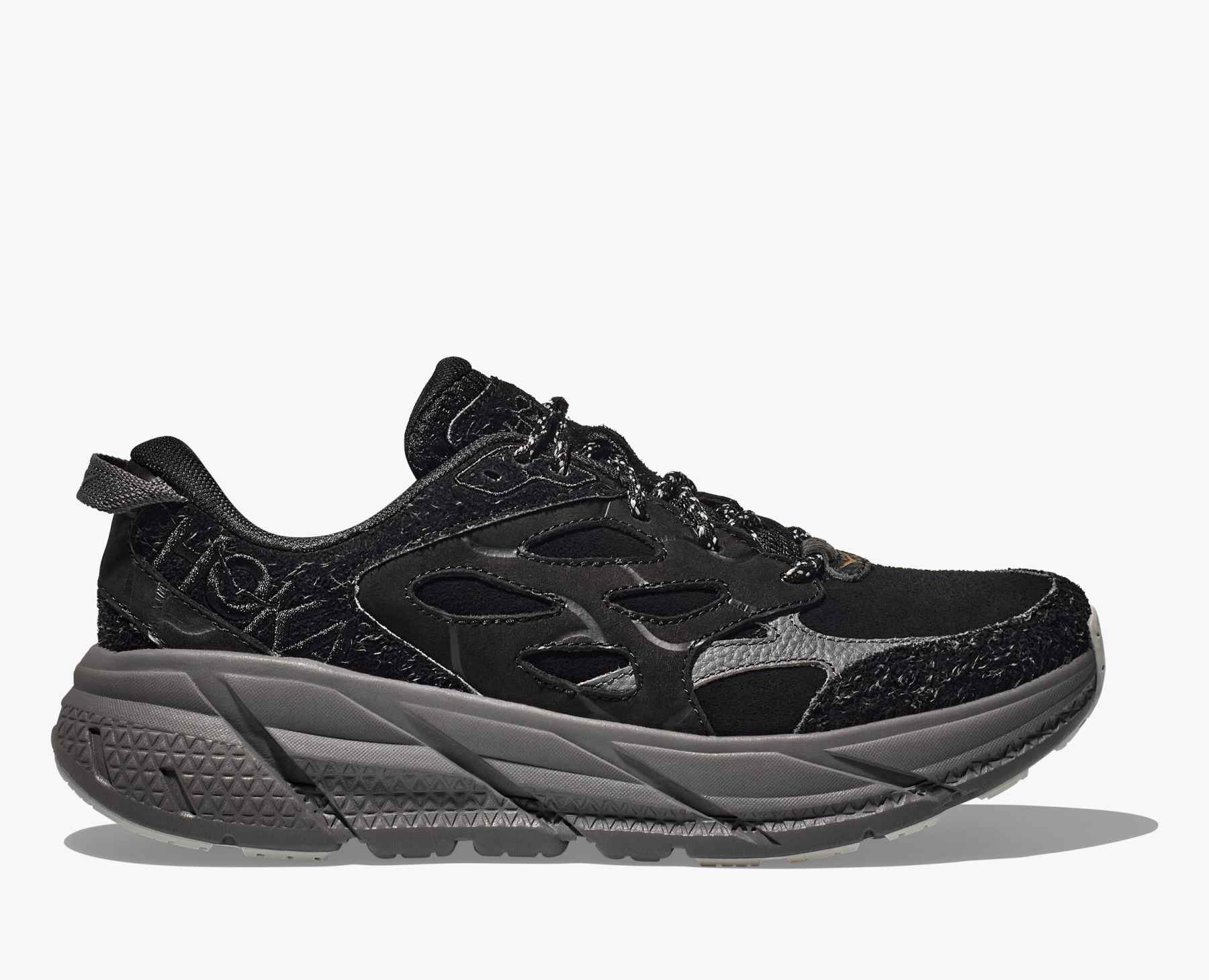 Offering a welcome departure from the everyday, the new Elite Terrain System Collection Clifton L merges textured suedes and muted earth tones to deliver a rugged style that easily transitions from…Offering a welcome departure from the everyday, the new Elite Terrain System Collection Clifton L merges textured suedes and muted earth tones to deliver a rugged style that easily transitions from city streets to off-road adventures. Combining HOKA’s signature cushioning and geometry for an incredibly lightweight ride, this casual sneaker features an airy EVA footbed and durable rubber outsole.