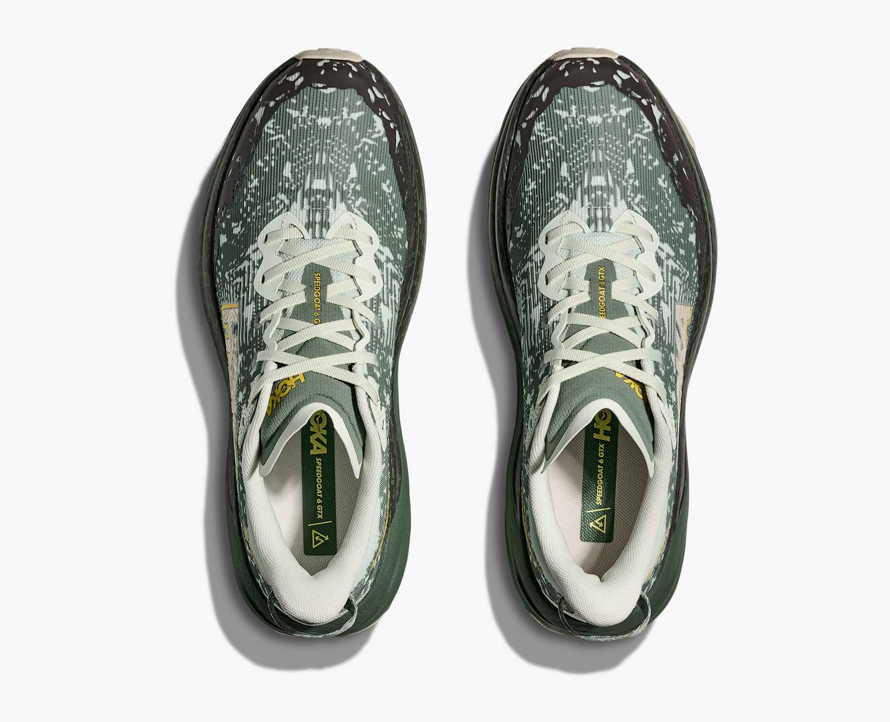 The Speedgoat 6 GTX is now even more comfortable with GORE-TEX’s Invisible Fit waterproof membrane for a lighter, more flexible construction to help avoid pressure points. Grounded in a Vibram®…The Speedgoat 6 GTX is now even more comfortable with GORE-TEX’s Invisible Fit waterproof membrane for a lighter, more flexible construction to help avoid pressure points. Grounded in a Vibram® Megagrip with Traction Lug outsole for increased bite on loose soil, this trail icon employs a foot-cradling heel bolster, lightweight, responsive midsole compound, and a protective toe rand for charging through the rough stuff. Bring it, weather.